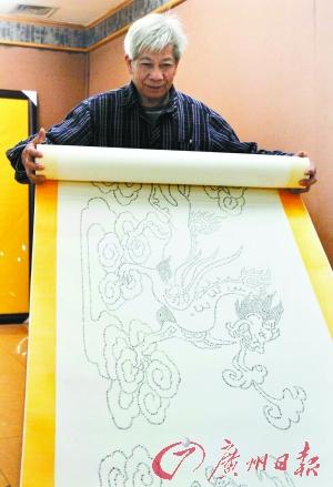 大图:阮可龙在展示百龙图。