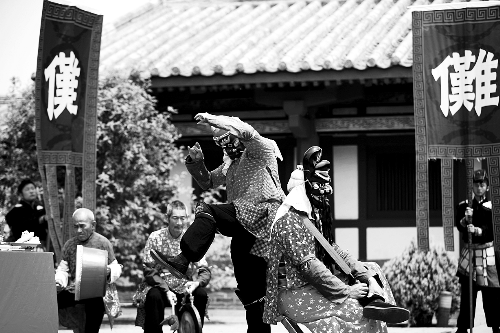 锣鼓起,傩班似疾风,以山为幕,以地为场,在傩乐的伴奏下,只见双伯郎武艺高强,刀光剑影;关公髯长二尺,面如重枣,大刀所至,无坚不摧;雷公霹雳出击,地动山摇;钟馗捉鬼,众小鬼屁滚尿流……或腾挪跳跃,或执刀相向,或醉酒卧地,或相濡以沫。