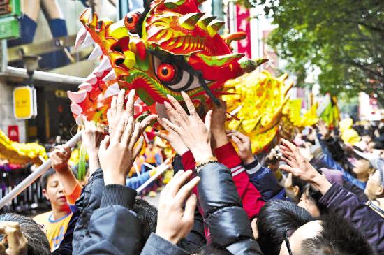 往届广府庙会观众争相摸龙头