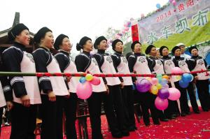 水车坝距贵阳40多公里,是个有500多年历史的依山傍水的布依族村寨,因寨子曾一度是水车最多的地方而得名。该村从当初的几户发展到现在100多家,布依族以歌会友、以歌传情的风俗一直在寨子里延续着。每年春节,水车坝的布依人都在歌声中度过。从2009年起,水车坝开始在每年的正月十二举办一次布依歌会,如今歌会已成为传承民族风情、展示民族风貌的盛会。此次,热情的水车坝人又邀来四方客人到寨子里赛歌,与大家一起分享布依歌带来的欢乐。