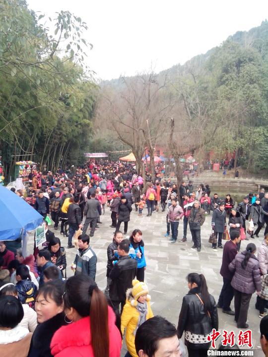 阆中市民“游百病”人潮如织,图为在阆中“锦屏山风景区”。 王斌 摄
