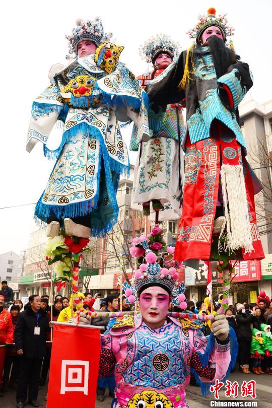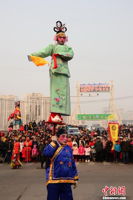 元宵会演出现场演员表演三架“宽城背杆” 朱建军 摄