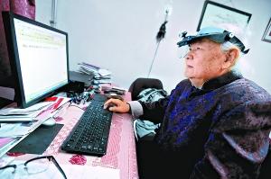 赵大年如今在电脑上码字,总要戴上一种特殊的放大镜。本报记者 方非摄
