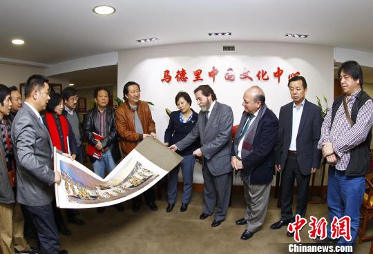 中新网2月18日电 “彩绘丝路”——中国当代著名美术家丝绸之路万里行大型文化交流活动日前在西班牙开展采风考察活动,中国驻西班牙大使馆文化参赞庄丽肖在马德里接见了考察团成员,并邀请西班牙艺术家一起座谈交流。
